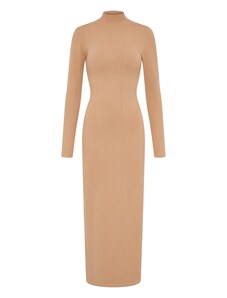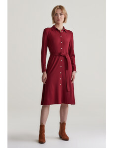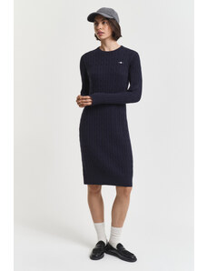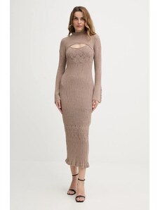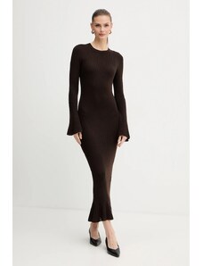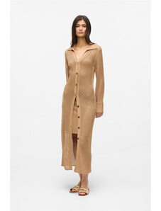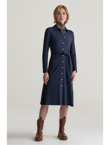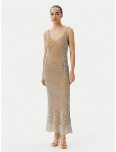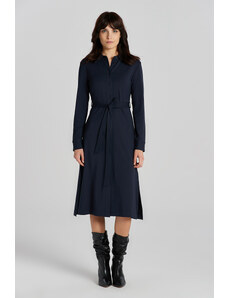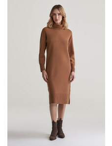 Úpletové dámske šaty voľného strihu s okrúhlym výstrihom a dĺžkou sukne pod kolená. Dlhé, mierne sa rozširujúce rukávy. Sofistikovane textúrovaná pletenina je tvorená kvalitným viskózovým vláknom, ktoré je charakteristické svojím leskom, hebkosťou a príjemnou mäkkosťou. Kvalitné spracovanie prémiového materiálového zloženia predstavuje záruku vysoko komfortného pocitu v priebehu nosenia. Dokonale padnúci, šmrncovne vyzerajúci ležérno-elegantný artikel.