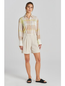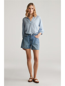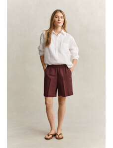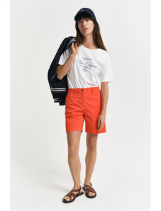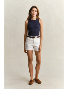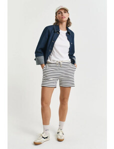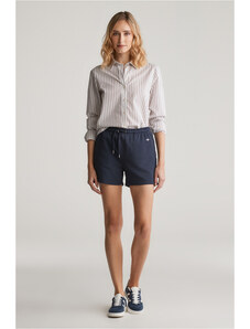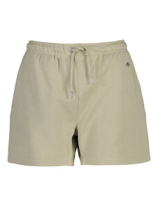 Dámske teplákové šortky v mini dĺžke. Rovný strih so stredne vysokým sedom a elastickým lemom v páse dopĺňa originálne logo Gant vyšité na boku. Nechýbajú tonálne šnúrky s kovovým ukončením a bočné výpustkové vrecká. Mäkký bavlnený úplet s textúrovanou zadnou stranou zaručuje maximálne príjemný pocit pri nosení aj udržateľnosť. Použité syntetické vlákna v týchto šortkách sú 100% recyklované. Dokonale komfortný a praktický kúsok, ktorý štýlovo doladí Váš ležérny outfit.