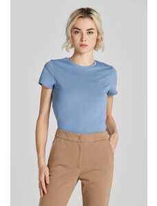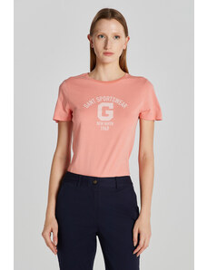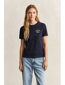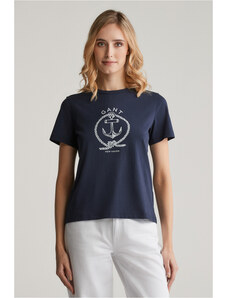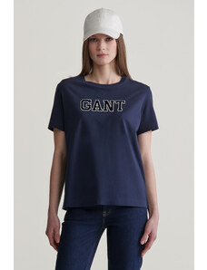 Dámske tričko voľného strihu, ktoré zdobí grafické logo Gant vyšité na hrudi. Ležérny dizajn s okrúhlym výstrihom a krátkym rukávom dopĺňa rebrovaný lem pri krku. Materiálové zloženie so 100% podielom prémiovej bavlny zaručuje dokonalú priedušnosť a maximálne príjemný pocit počas nosenia. Výborne kombinovateľný a praktický kúsok, ktorý štýlovo doladí Váš letný outfit.