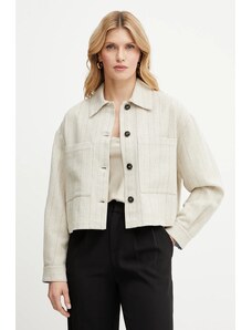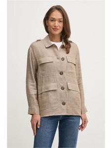 Predné gombíkové zapínanie a praktické náprsné vrecko dodávajú bunde klasický, ale moderný vzhľad.