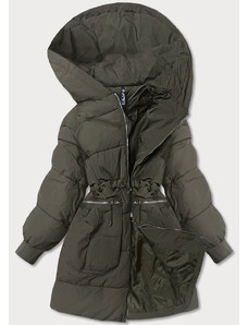 FLY LUXURY Dámska zimná bunda nadrozmernej veľkosti v khaki farbe (736art)