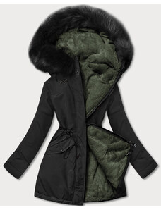 MHM Dámska teplá zimná bunda obojstranná čierna/khaki (w610)