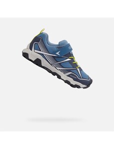 Dark blue boys' sneakers Geox Magnetar B ABX with practical dry zip and waterproof technology. The Velcro fastener allows you to quickly put them on when rushing to school without having to tie the laces, and the Amphibiox️ technology keeps your feet dry when walking through puddles in the schoolyard or playing outside in the rain. The chunky patterned sole prevents slipping on wet leaves while playing in the park, and the orange elements on the laces complement both the dark school uniform and colorful sweatpants during weekend games with friends.