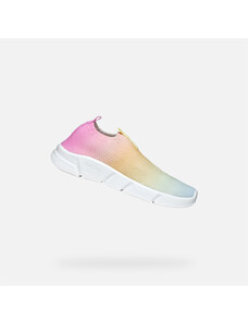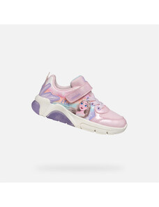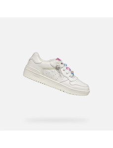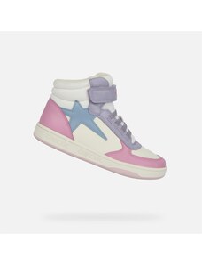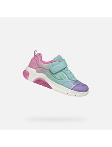 The stylish Geox Washiba girls' sneakers in an elegant white-pink-purple combination impress with their timeless design. Two practical Velcro fasteners ensure easy putting on and a secure hold on the foot. Perforated parts of the upper together with a textured sole contribute to a comfortable fit.