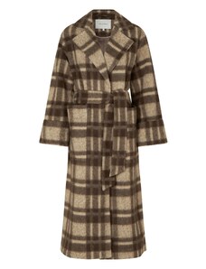 Dámský vzorovaný kabát ve žluto - šedé barvě. Kabát má 3/4 délku a zapínání na knoflík. V pase má kabát černý pásek na vázání. Po straně nechybí kapsy. Kabát je elegantní a krásně sedí na těle. Hodí se k nošení do práce i do města.