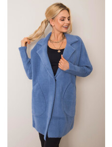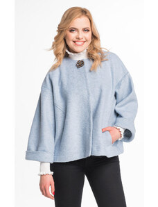 Dámsky kabát yetti v svetlomodrej farbe. Kabát má krátku dĺžku a voľný strih. Uzáver je navrhnutý s nášivkami. Kabát má bočné vrecká. Kabát určite zapôsobí na vaše okolie. Je vhodný do mesta aj na voľný čas.