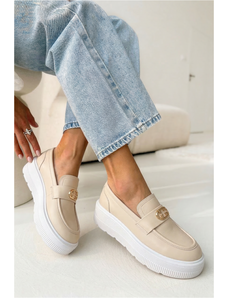 Kožené mokasíny s platformou Vinceza béžové