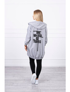 MladaModa Mikina s nápisom "The world is yours" na chrbte šedá