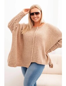 MladaModa Asymetrický oversize sveter vo voľnom strihu model IT86 farba camel