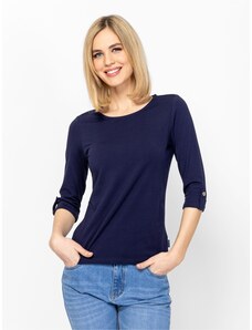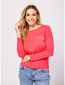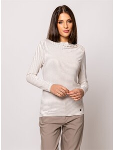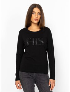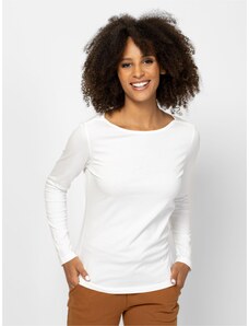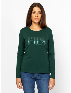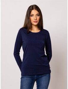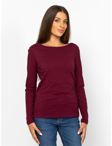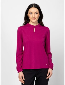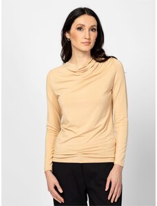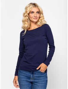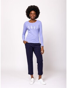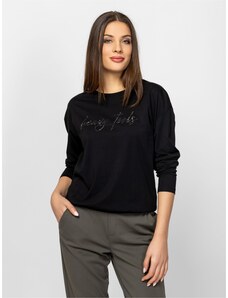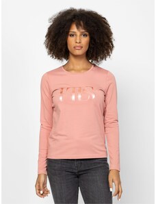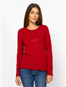 Dámske tričko s dlhými rukávmi v priliehavom strihu s V výstrihom, z tkaniny zo zmesi viskózy, malou kovovou značkou na prednej strane. Materiál: 85% viskóza, 8% elastan, 5% nylon, 2% lurex.