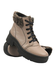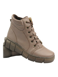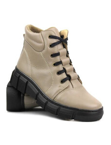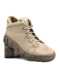 Lehké, pohodlné dámské kotníkové boty vyrobené v Polsku - HELIOS Komfort 612-2, tmavě béžová