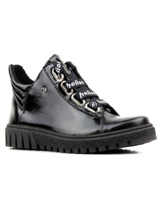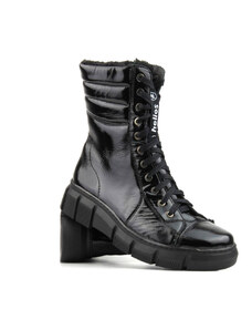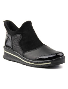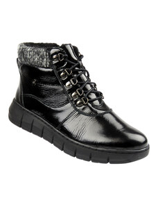 Lakovaná kotníková obuv, dámská dělnická s vlnou - HELIOS Komfort 611-2, černá