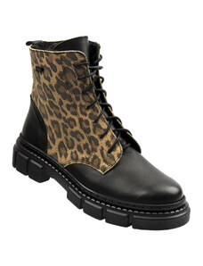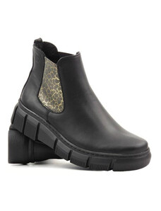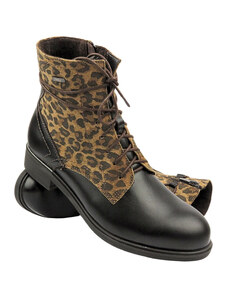 Dámské kožené Chelsea boty s leopardím potiskem - HELIOS Komfort 510S, černé