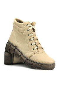 Kožené dámské kotníkové boty polské značky - HELIOS KOMFORT 523, béžová