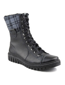 Helios Komfort Dámské kožené boty Trappers Polish Brand HELIOS Comfort 604 Black Lace-up