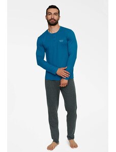 Henderson Pánske bavlnené pyžamo na gombíky Mic 43035-05X nebesky modré, Farba nebesky modrá
