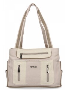Univerzálna dámska nákupná taška značky Hernan. Kombinuje precízne spracovanie s funkčným dizajnom. Je celá vyrobená z odolnej ekologickej kože a poteší vás svojou priestrannou veľkosťou XL vybavenou množstvom vreciek. Skvele doplní vaše ležérne oblečenie a ponúkne vám nadčasový štýl a pohodlie. Objednajte si ju! Svetlozelená nákupná taška s béžovým nádychom vyzerá štýlovo!...