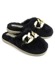 Dámské kožešinové pantofle s řetízkem - INBLU EK-06, černé