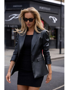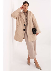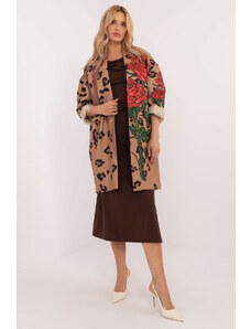 Dámsky kabát s každodenným charakterom, ideálny do práce aj na bežné nosenie. Vyrobený z viskózy a polyesteru s potlačou a jemným nápisom po celej dĺžke vyniká moderným, originálnym dizajnom. Model štandardnej dĺžky s dlhými rukávmi, zabudovanými ramennými vypchávkami a podšívkou zaručuje elegantný strih a pohodlie pri nosení. Zapínanie na gombíky zdôrazňuje klasický strih, zatiaľ čo hladká podšívka dodáva ľahkosť a pohodlie. polyester 40 % Viskóza 60 % Veľkosť DĺžkaObvod bokov Obvod hrudníka univerzálny79 cm104 cm110 cm