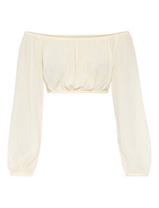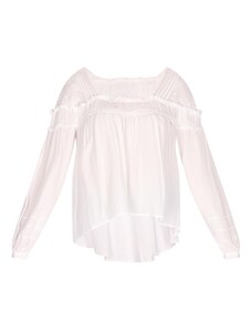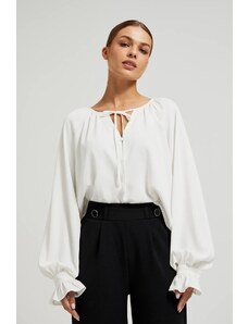 Dámsky elegantný top Laura - štýl a elegancia v jednom Dámsky elegantný top Laura je štýlový, moderný a ideálny pre ženy, ktoré milujú vkusné a ženské detaily. Asymetrický top v dĺžke do pása má dlhé rukávy, okrúhly výstrih a vypchávky na ramenách, ktoré krásne formujú siluetu. Efektné riasenie na boku doplnené o zlatý ozdobný prvok dodáva topu punc luxusu a okamžite z neho robí výrazný kúsok vášho outfitu.