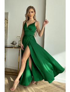 Dámske elegantné šaty Glam – luxusné dlhé saténové šaty v štýle morskej panny Dlhé elegantné šaty Glam sú stelesnením luxusu, ženskosti a slávnostnej elegancie. Vyrobené zo splývavého, žiarivého saténu, nádherne obopínajú postavu a zvýrazňujú všetky krivky. Ich dlhý strih s jemne rozšírenou spodnou časťou v štýle morskej pann y pôsobí mimoriadne žensky a opticky predlžuje siluetu.