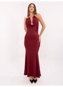 Predná časť šiat je zdobená sofistikovaným vodopádovým výstrihom, ktorý dopĺňa elegantný zlatý náhrdelník integrovaný priamo do modelu. Zadná časť je odhalená , čo vytvára zvodný efekt a dodáva šatám jedinečný luxusný charakter.
