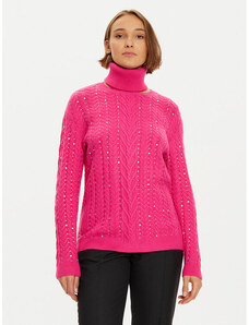 ITALY MODA Tmavoružový rolák s vrkočovým vzorom AT-SW-2348.93-fuchsia