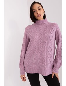 ITALY MODA Fialový vrkôčikový sveter s rolákom -AT-SW-2355-2.19P-fioletowy