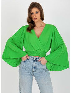 ITALY MODA Zelená elegantná blúzka s obálkovým výstrihom -DHJ-BZ-16503.30X-svetlo zelená