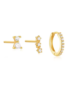Olivie Stříbrné náušnice 3ks GOLD 9385