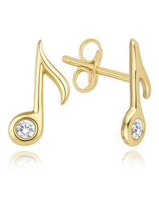 OLIVIE MINET Zlaté náušnice noty s bielymi zirkónmi Au 585/1000