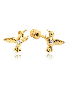 OLIVIE MINET Zlaté náušnice kolibríky na skrutku Au 585/1000