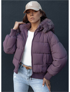 BASIC Fialová dámska zimná prešívaná bunda s kožúškom na kapucni COLDPACK TY4431