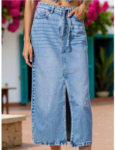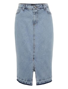 Trendyol Curve Modrá Džínsová Midi Sukňa s Predným Rozparkom a Detailmi