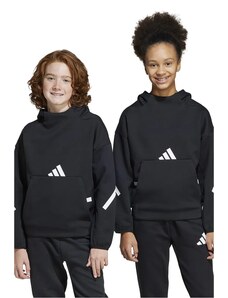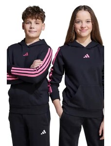 Detská mikina adidas čierna farba, s kapucňou, s potlačou, JJ4801