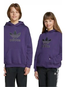Detská mikina adidas Originals fialová farba, s kapucňou, s nášivkou, JV8653
