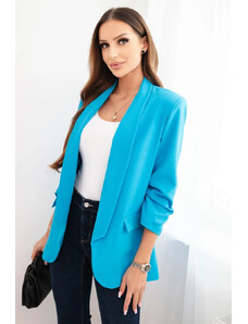 MladaModa Elegantné sako s nariasenými rukávmi, bez zapínania model 9165 svetlomodré