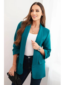 K-Fashion Dámska bunda bez zapínania s podšívkou S/M tyrkysová