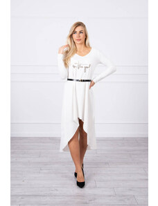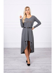 Predstavujeme vám pohodlné šaty s ozdobným opaskom a módnym nápisom na prednej strane. Šaty majú dlhší chrbát. Šaty sú vyrobené z kvalitného materiálu. Veľmi zaujímavá ponuka pre všetky dámy. Veľkosť je univerzálna a vyhovuje dámam, ktoré nosia veľkosť S, M alebo L.Zloženie:90 % bavlna,10 % elastanuRozmery:Šírka v podpazuší: 42 cmDĺžka rukávu od ramena: dĺžka od ramena: 53 cmCelková dĺžka vpredu: 88 cm/vzadu: 128 cmŠírka v oblasti bokov: 62 cmhmotnosť: 430 g