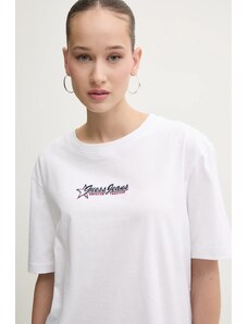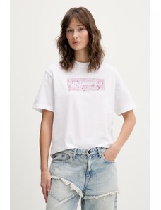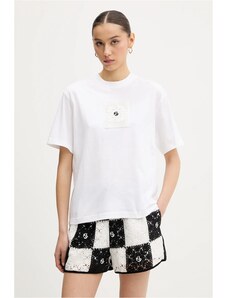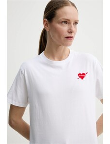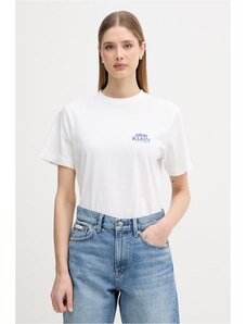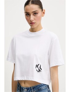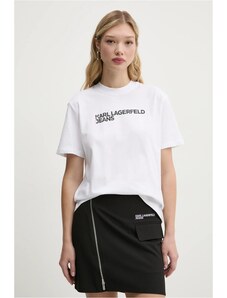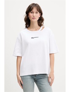 Biele tričko Karl Lagerfeld Jeans je dámske tričko, ktoré ponúka voľný strih a materiál príjemný na dotyk. Tento model, zdobený výraznou potlačou, umožňuje vytvárať rozmanité štylizácie a zdôrazňuje individuálny charakter. Je to kúsok, ktorý spája komfort nosenia s moderným dizajnom a dokonale zodpovedá potrebám aktívnej ženy.
