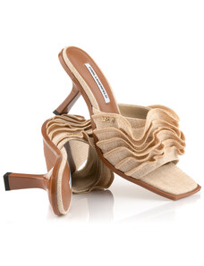 Dámske sandále z hladkej usne prémiovej kvality, ktoré si Vás získajú svojim nadčasovým vzhľadom a originálnymi detailmi. Elegantný dizajn s nízkym podpätkom a voľnou pätou dopĺňa vytlačený vzor monogramu na prednej strane. Mäkká stielka zaručuje maximálny komfort pri nosení. Nezameniteľne štýlová obuv, ktorá bude ozdobou Vášho letného outfitu.