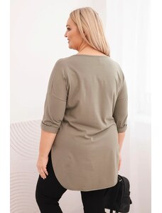 We present to you a comfortable blouse. The blouse has a V-neck. The blouse is made of high-quality material. The size is universal and will be suitable for ladies in sizes XS, S or M.