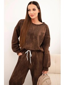 Dámska tepláková súprava Kesi Bella khaki TABUĽKA VEĽKOSTÍ Dámska tepláková súprava Kesi Bella v khaki farbe je štýlová a veľmi pohodlná, trendy model na každodenné nosenie. Vrchný diel tvorí mikina bez kapucne vo voľnom strihu. Dlhé rukávy sú ukončené na pohodlné elastické manžety. jednofarebná dámska tepláková súprava bez potlače komplet mikina a tepláky veľkosť je univerzálna, vhodná pre ženy veľkosti S, M a L Typ: dámska tepláková súprava, teplákovka Značka: Kesi Materiál: 95% viskóza, 5% elastan Vlastnosti: teplákový, viskózový materiál, bez zateplenia, elastický Veľkosť: univerzálna (vhodné pre S, M, L) Sezónnosť: celoročne Kód modelu: KS-7065P Tabuľka veľkostí teplákovej súpravy Kesi Bella Univerzálna veľkosť (vhodné pre S,M, L) Rozmery mikiny Šírka pod pazuchami 62 cm Celková dĺžka vpredu 62 cm Celková dĺžka vzadu 68 cm Dĺžka rukáva od podpazušia 42 cm Rozmery teplákov Šírka v páse *33-51 cm Dĺžka nohavíc od rozkroku 64 cm Celková dĺžka 92 cm *Šírka v páse 33 cm (po natiahnutí 51 cm)