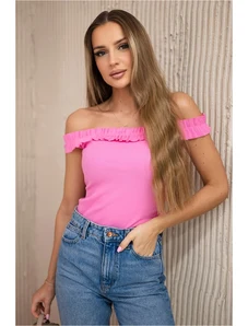 Introducing a fashionable blouse. Blouse with bare shoulders, Spanish. Fashionable ruffles. Elastic sewn in the neckline. The blouse is made of high-quality material. The size is universal and will be suitable for ladies in sizes S, M or L.