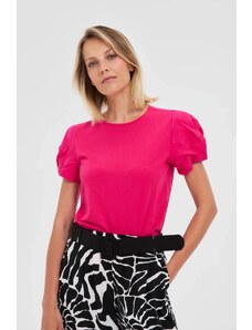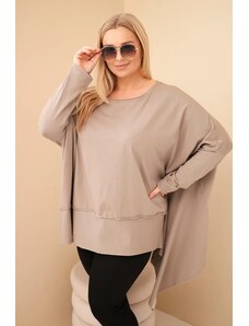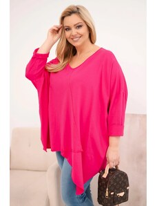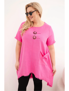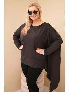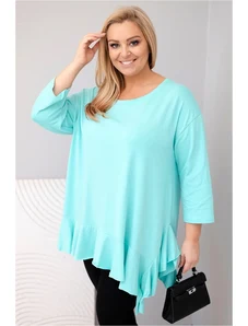 Táto plus size blúzka je vyrobená z mäkkej a pružnej bavlny s elastanom, čo zaručuje pohodlie počas celého dňa. Voľný strih neobopína telo a dekoratívny volán na spodku pridáva ľahkosť a charakter. Asymetrický lem krásne splýva so siluetou. Rukávy s možnosťou vyhrnutia dodávajú ležérny štýl. Univerzálny dizajn je vhodný na rôzne príležitosti, či už do práce, na stretnutia alebo prechádzky. Vyrobené v Taliansku.