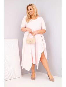 Kesi Włoski Plus size žlté šaty s volánmi a vyhrnutými rukávmi