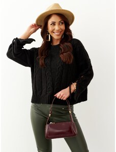MladaModa Alpaka sveter s okrúhlym výstrihom model F3623A čierny