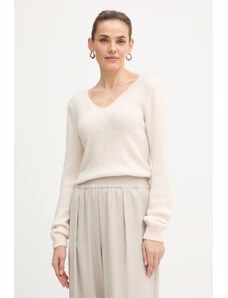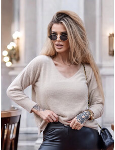 Kesi Włoski Dámsky sveter z baby alpaky s golierom a V výstrihom béžový