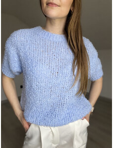 MladaModa Oversize sveter s krátkym rukávom model 70123 svetlomodrý
