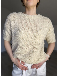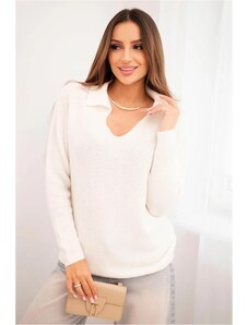 MladaModa Sveter z baby alpaky s golierom model IT106 farba ecru